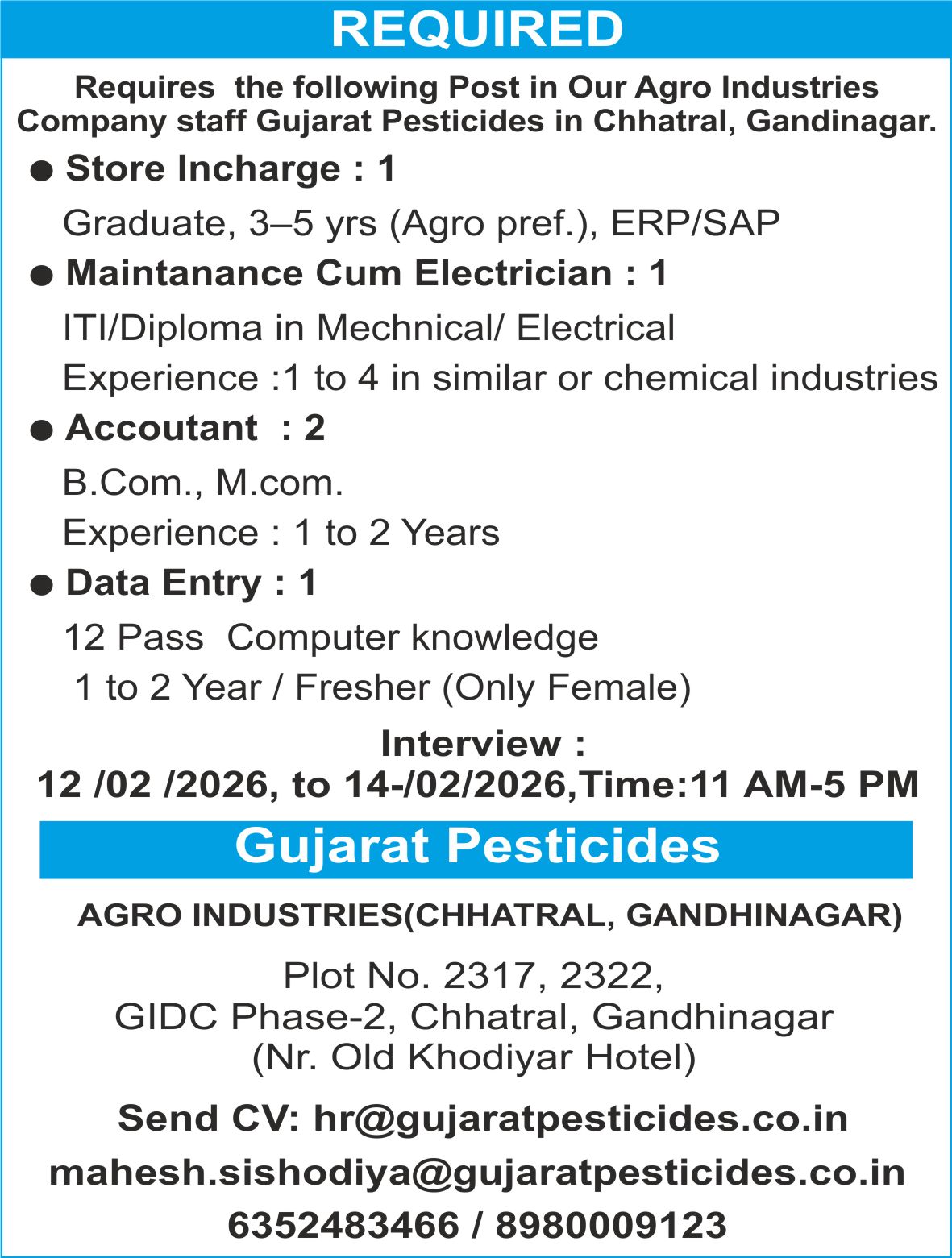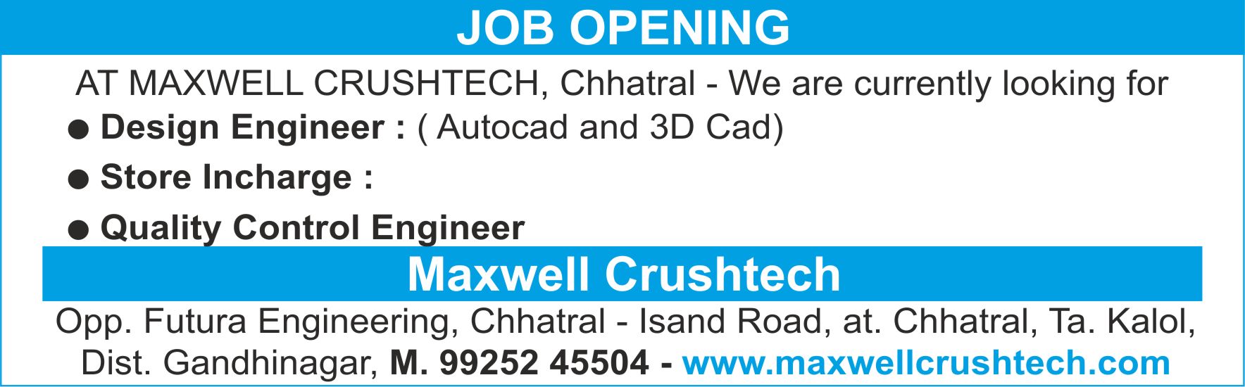 Contact No. : 9624917538