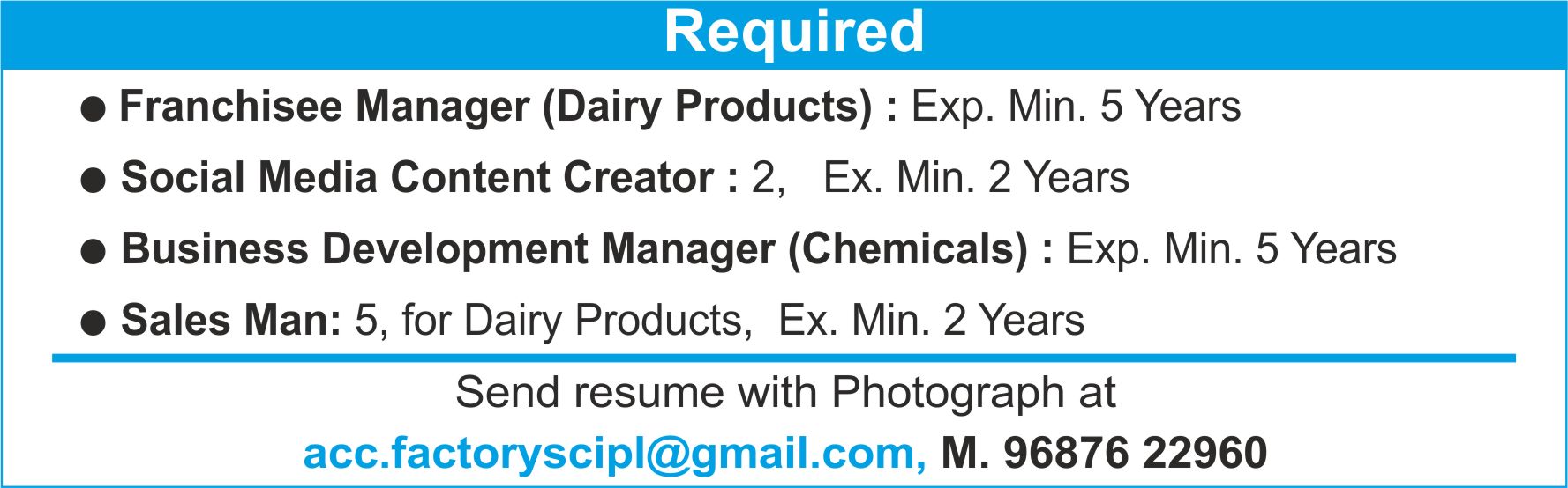 Contact No. : 9825437909