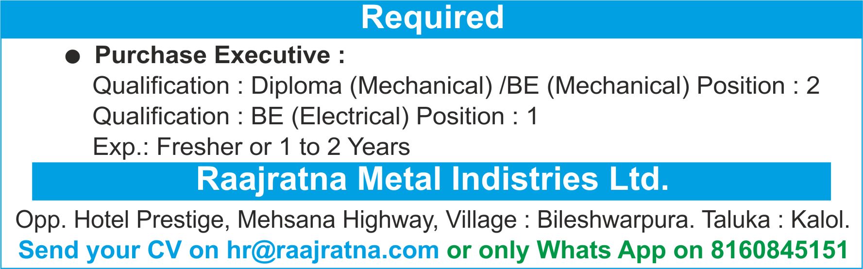 Contact No. : 8160845151